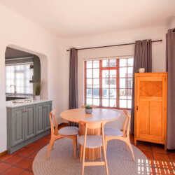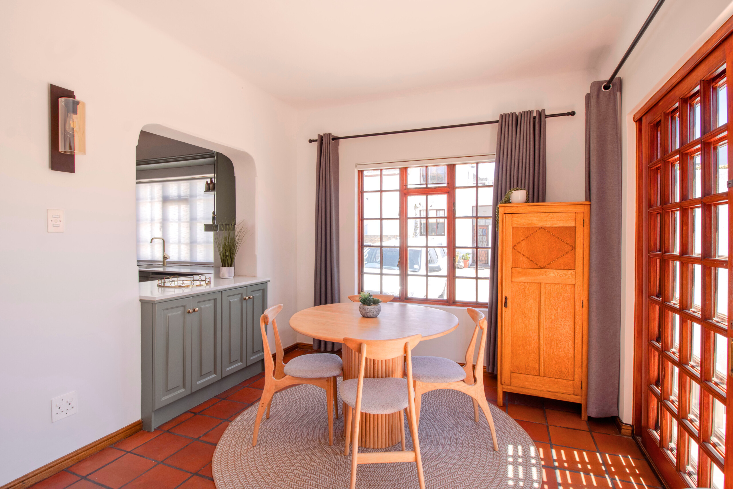 - The dining area offers seating for 4 and also opens onto the patio through wooden sliding doors