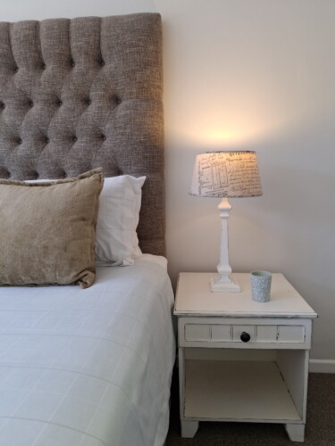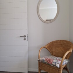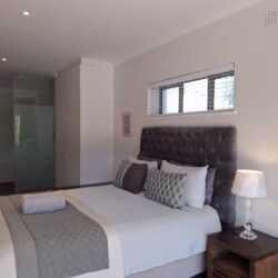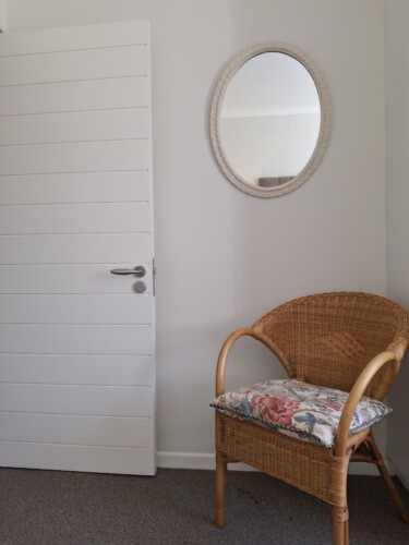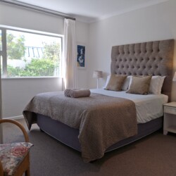 - Bedroom 3 (upstairs): Queen bed with en suite bathroom with shower. Opens up onto upstairs balcony with lovely views of golf course and Hermanus mountains