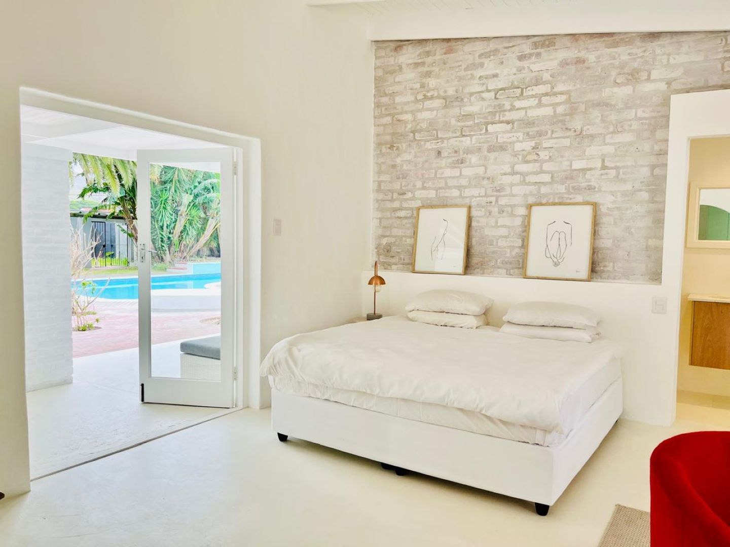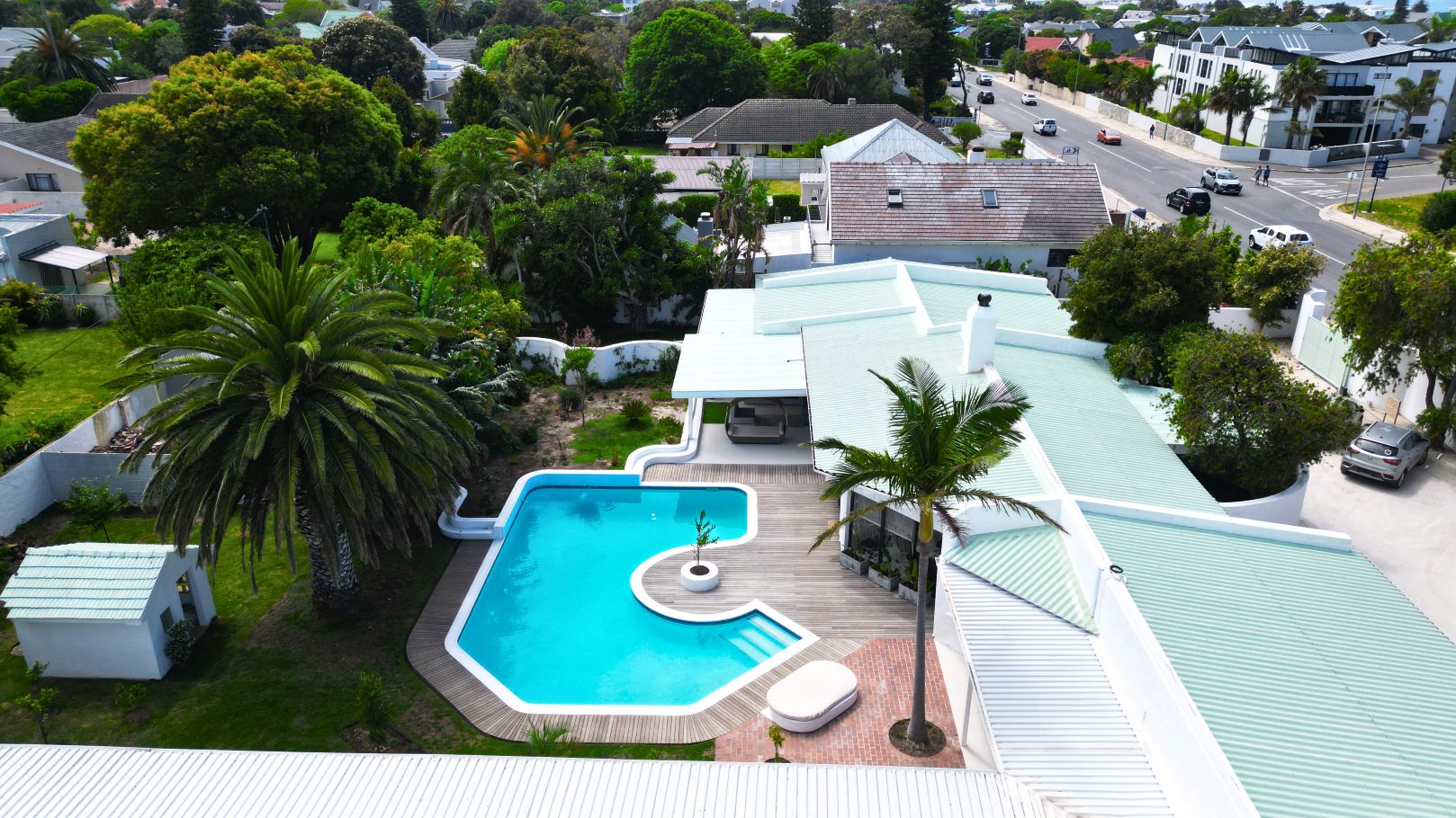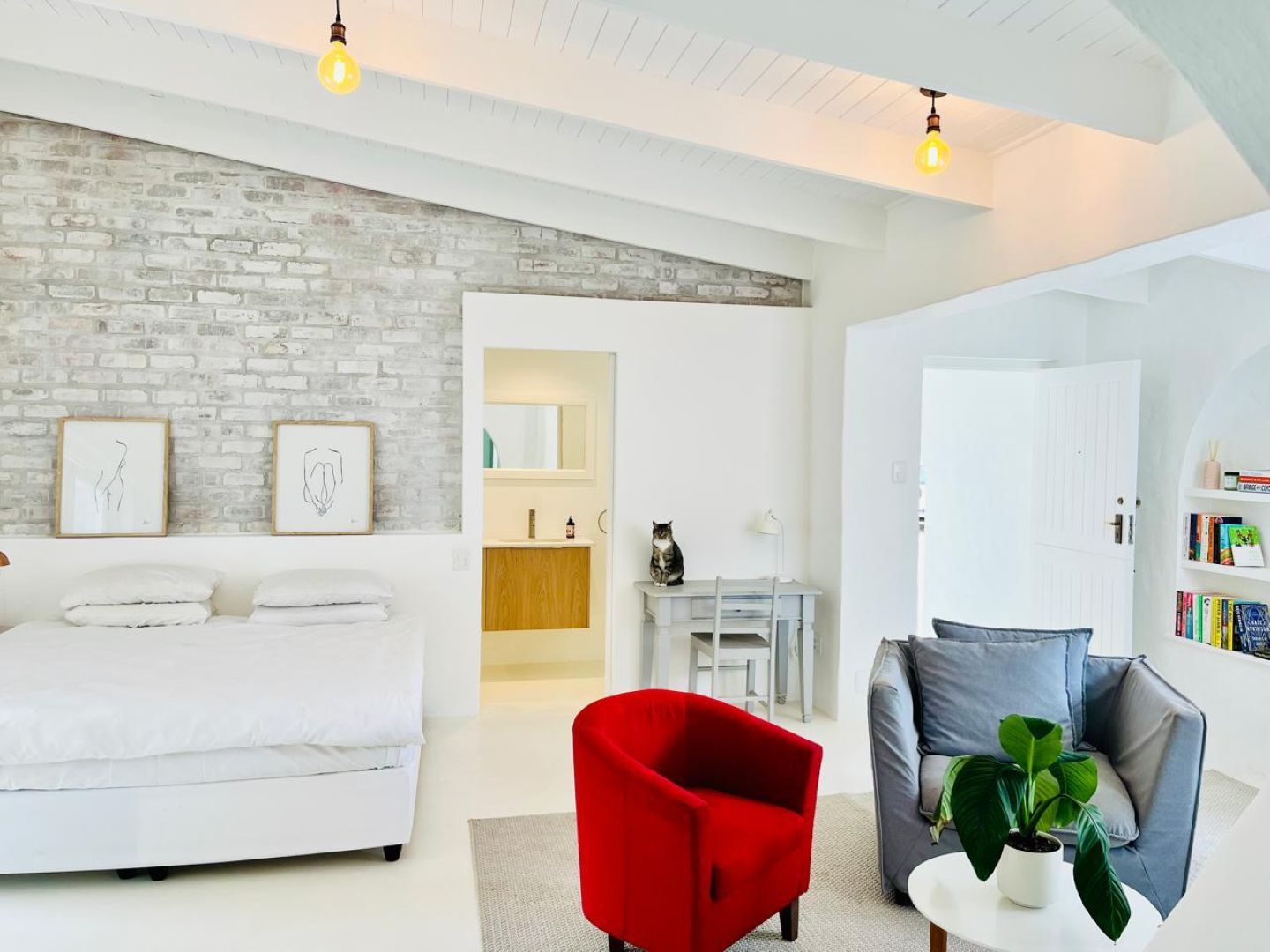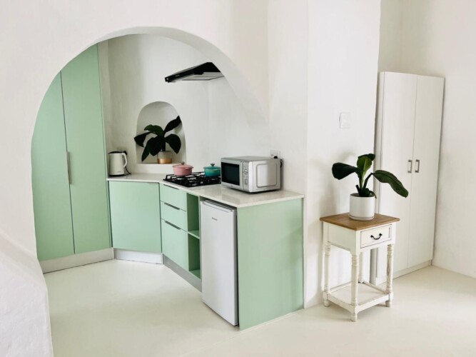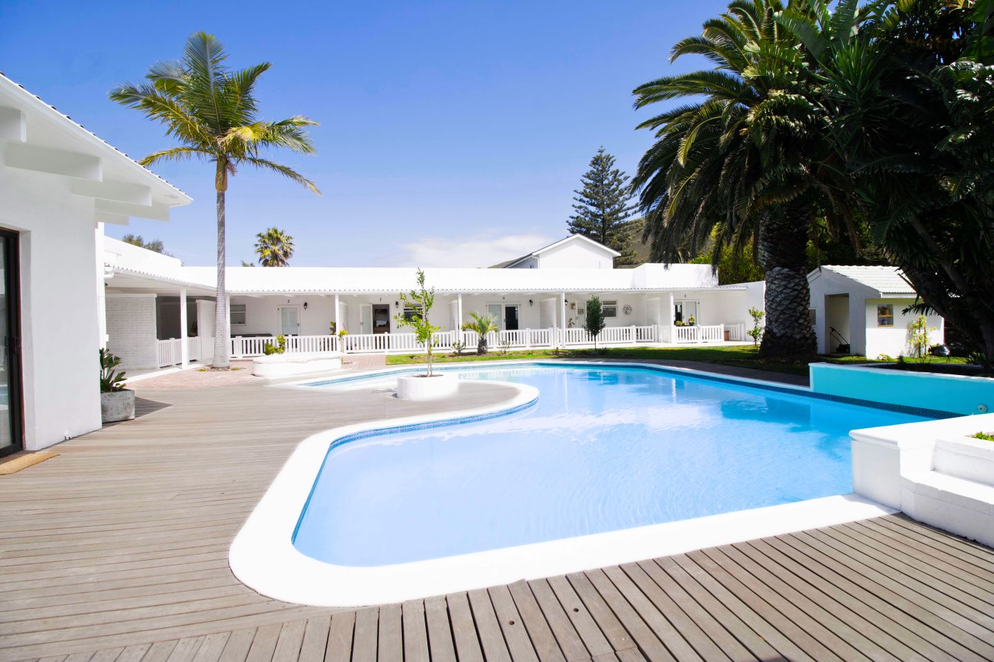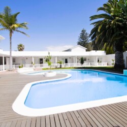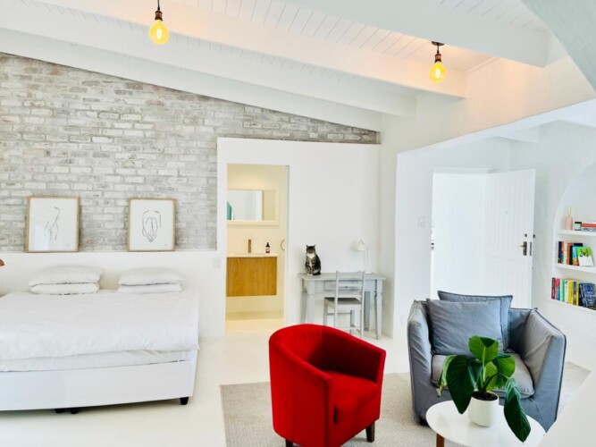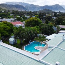 Discover a stylish bachelor holiday apartment perfectly situated on the main road of Hermanus. One of just six exclusive units, each apartment overlooks a serene communal pool that feels like your own private oasis, surrounded by lush greenery and offering breathtaking mountain views from the poolside.
