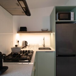 These modern apartments feature private bathrooms and well-equipped kitchenettes, ensuring both comfort and convenience for your stay. Whether you’re relaxing by the pool or enjoying the contemporary interiors, you’ll appreciate the thoughtful design and amenities throughout.