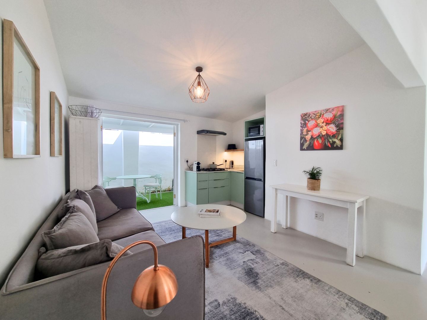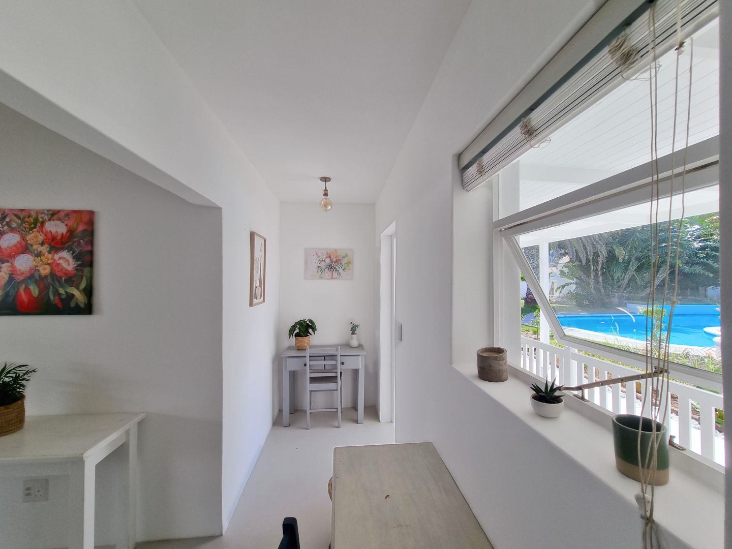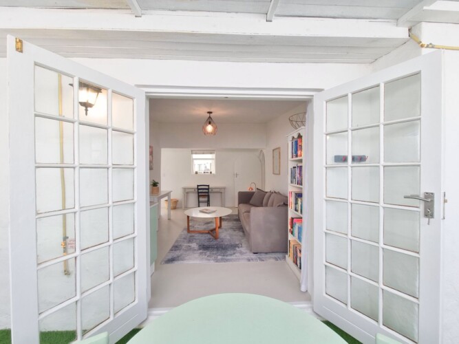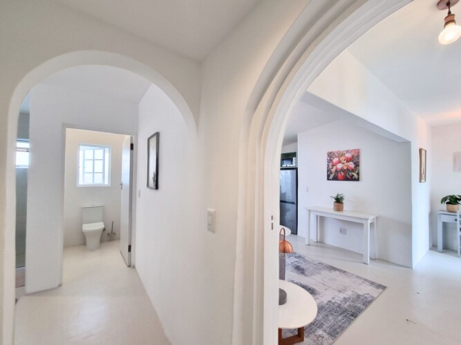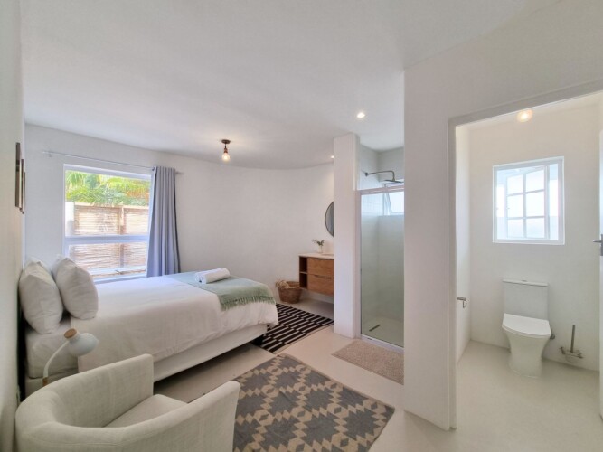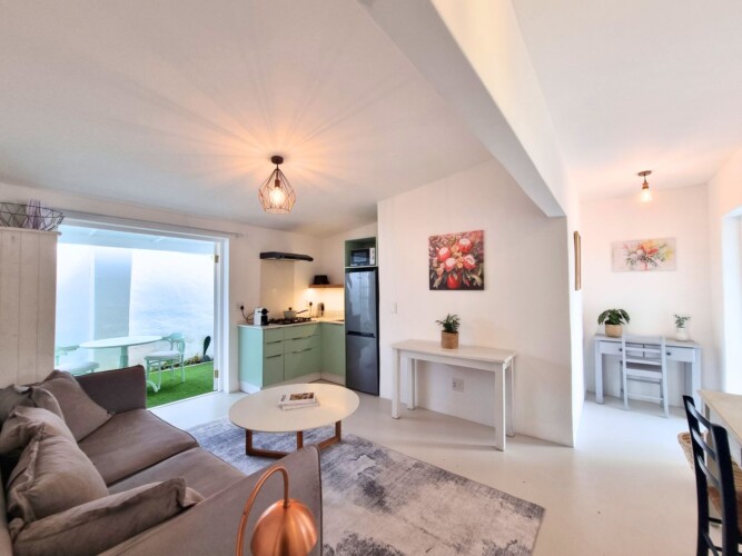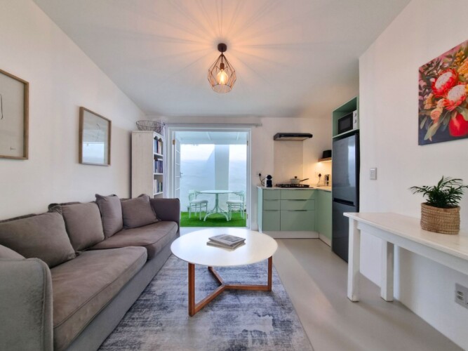 Discover a stylish bachelor holiday apartment perfectly situated on the main road of Hermanus. One of just six exclusive units, each apartment overlooks a serene communal pool that feels like your own private oasis, surrounded by lush greenery and offering breathtaking mountain views from the poolside.
