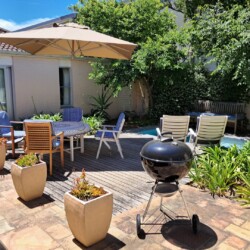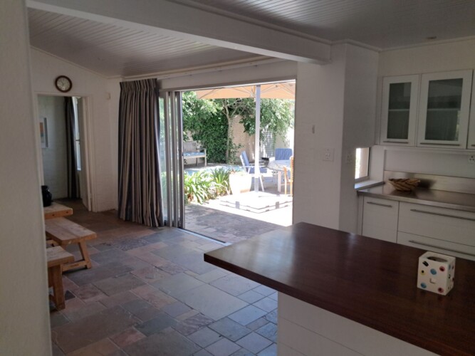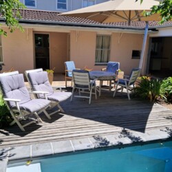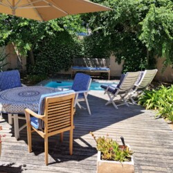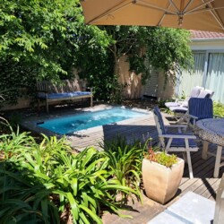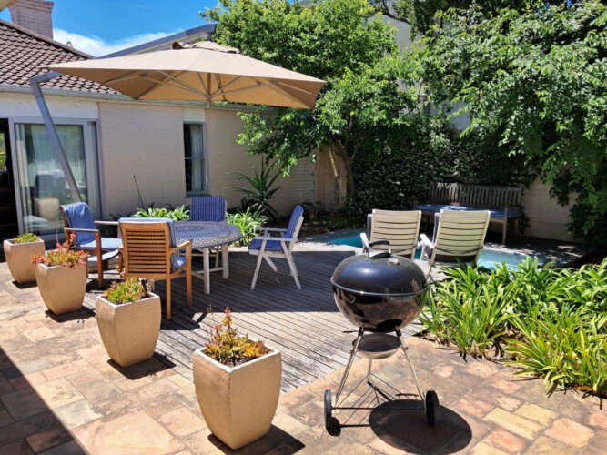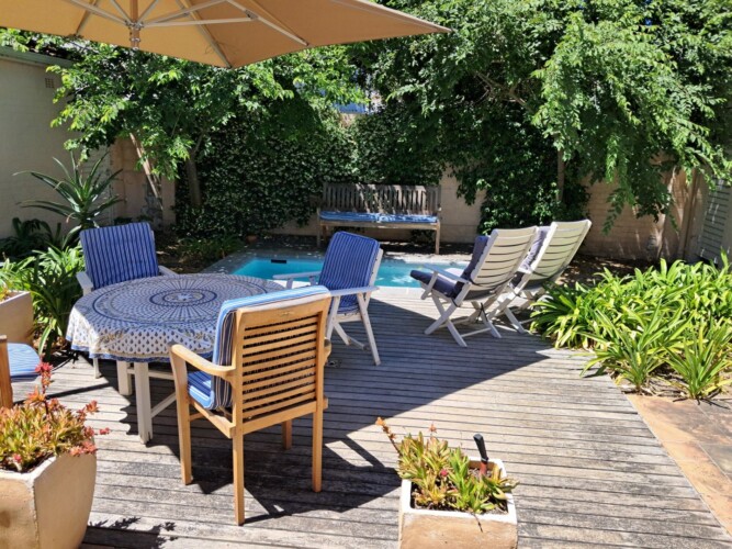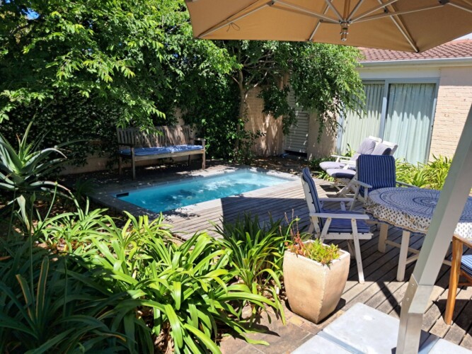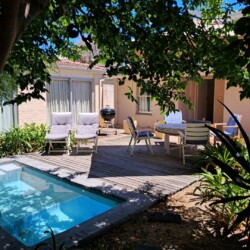 This beautiful, comfortable cottage is centrally situated close to beaches, the golf course and the center of Hermanus town, but that’s not it’s biggest surprise. No, this is hidden right at the heart of the property which is built around a peaceful central courtyard where a cool splash pool helps you cool down after a long hot day in the sun.