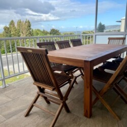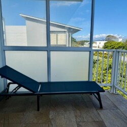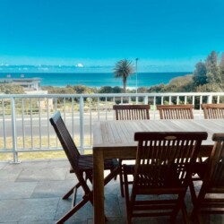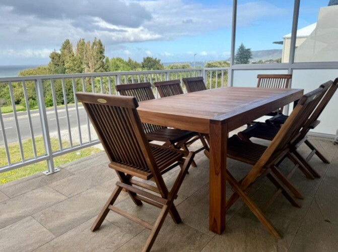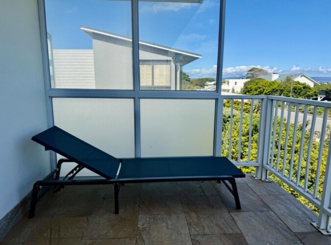 This lovely holiday home is situated directly above the much-loved Grotto Beach in Hermanus and has a stunning view of the beach and beyond. It is a few minutes walk to the beach through the milkwood forest. Enjoy the sea breeze from the living area which opens through a glass sliding door onto the front balcony. The sunsets here are beautiful too.